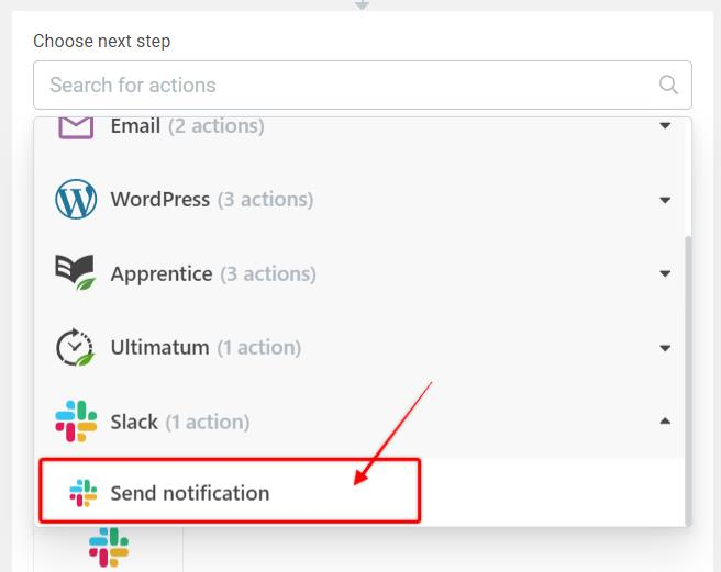 For the Slack integration, we've added a new action: Send notification.