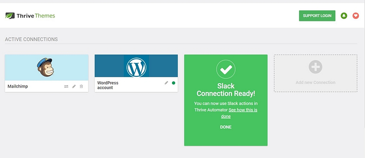 That's it! The Slack connection is now established and you'll see the Slack action in Thrive Automator.