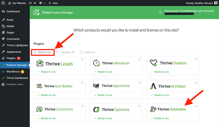 In Thrive Product Manager, click 'Refresh list' and then install Thrive Automator.