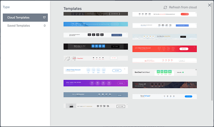 When you add a new countdown timer to your page in Thrive Architect, you'll get to select from 6 core templates.