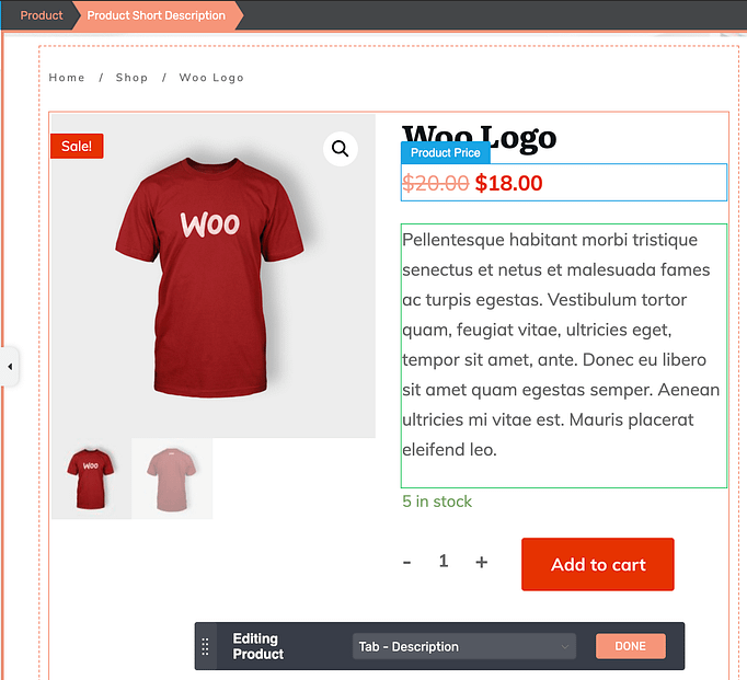 In this release, we've now released that same level of control on the Product element, used inside the WooCommerce product page template.