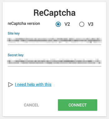 Once you have an account, visit the API dashboard and connect to ReCaptcha with your site key provided by Google.