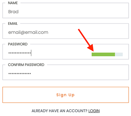 By default, the registration state shows name, email, password and confirmation fields. It even includes a password strength indicator!