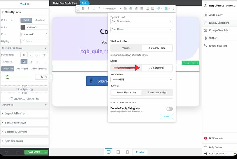 2. Show Full Category Breakdown on Quiz Results Pages (Thrive Quiz Builder)